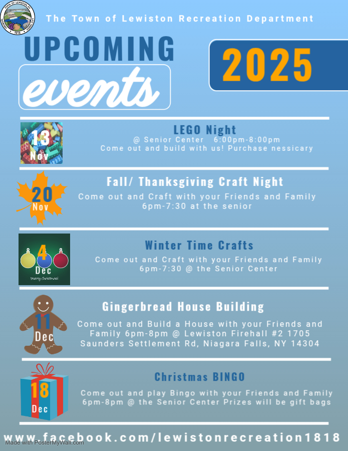 With five parks in Lewiston we have a great space for you to have your next celebration. More information coming soon. Please Contact Lewiston Recreation for more information. 716-754-8213 Ext. 237